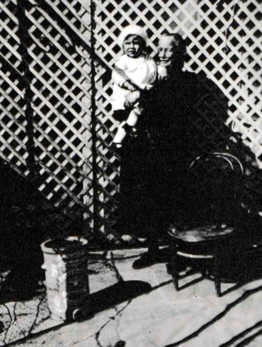 A létage, à droite, la chambre de mes parents lieu de ma naissance. Au rez de chaussée une grande chambre destinée à être une salle de repos pour Monsieur Marquand (Il ny venait jamais) elle nous servait de chambre damis. On distingue entre moi sur un tonneau et la maison, le jardin de grand-Mère fleuri de géraniums engraissés par les déjections des chevaux des maraichers qui livraient les halles centrales en fruits et légumes frais et la treille. A gauche dans lombre une grande véranda qui servait de cuisine dété. Complètement à gauche contre la muraille Mémée entretenait un grand poulailler qui nous assurait ufs et viande. Lorsque mes parents se marièrent, pour une raison affective et aussi pécuniaire mon père voulut bien accepter de vivre chez ses beaux-parents quil considérait un peu comme ses parents. Papa ayant été orphelin alors quil avait 17 ans. Lentrée principale souvrait par une porte sur le boulevard Villaret-Joyeuse perpendiculaire au boulevard Thiers. Cette porte permettait daccéder dans la grande véranda limitée du côté cour par un grand panneau de lattes de bois croisées à une dizaine de centimètres les unes des autres. En entrant dans la véranda à gauche il y avait la cuisine, à droite tout au bout il y avait un grand débarras sans plafond au fond duquel on accédait à un WC et une salle de bain (un bien grand mot) dans un réduit contenant une baignoire en zinc.