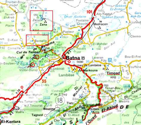 | Guides bleus Hachette, 1955.- De Batna à Corneille 23 km, BERNELLE, petit centre de la commune mixte de Bélezma, à 1 020 m d'alt. De Bernelle, on peut faire l'ascension (piste muletière) du djebel Mestaoua (1 565 m) au nord. Origine ???? Le général Joseph Jean-Nicolas Bernelle est un officier de la Légion étrangère français, né à Versailles le 5 octobre 1785 et mort le 7 janvier 1871 à Paris...En août 1832, il est détaché au commandement de la Légion étrangère, puis détaché au 1er BILA le 5 février 1833. Promu au grade de colonel le 9 avril 1833, il revient à la Légion. Il y est cité le 18 mai 1833, lors dune opération en Mitidja contre les Hadjoutes. Trois mois après son arrivée, les 1er et 5e bataillons sont cités en exemple pour lentrain et la vigueur dont ils font preuve dans la construction du blockhaus du gué de lArrach, la chaussée de Sidi Amsa, et la construction des camps de Kouba et de lOufferia. En septembre 1833, il organise la défense de Goéla. À la suite d'une blessure occasionnée par son cheval, il laisse le commandement de trois bataillons de Légion, stationnés au camp de Douera, au commandant Conrad (en).(Extrait : https://fr.wikipedia.org/wiki/Joseph_Bernelle) |
