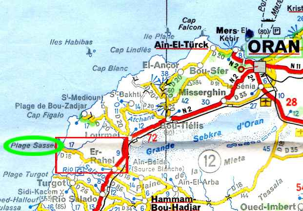 ci-dessous A, le plus rapide par Ain Témouchent ; ci-dessous