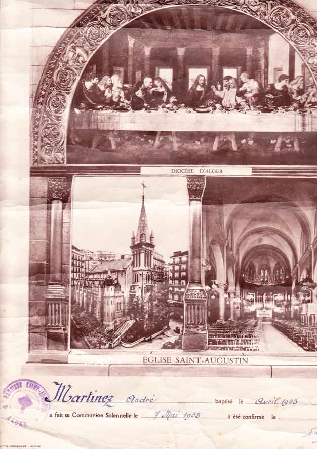 Certificat,(l'original = 37x28 cm)pour la communion de André Martinez, mai 1955
