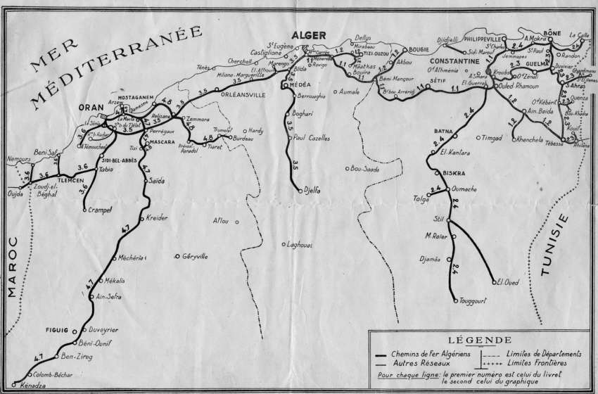| carte chemins de fer algeriens, 68 ko, document de L.Mirandre. | |||||||||||