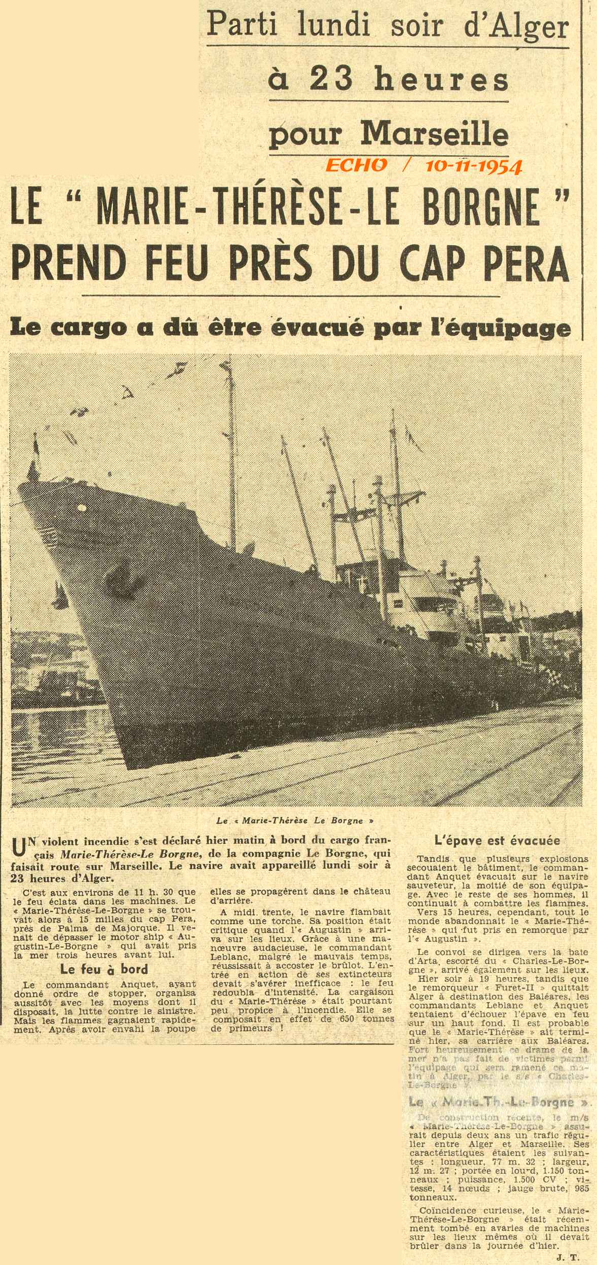 cargo « Marie-Thérèse-Le-Borgne » qui a brûlé